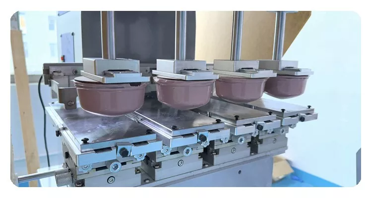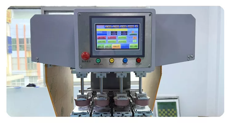 4-kolorowa maszyna do tampodruku do kasku wyposażona w panel dotykowy do sterowania