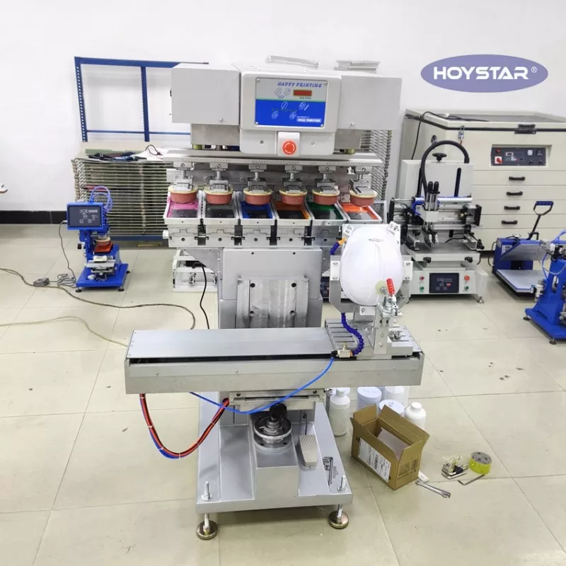Jako profesjonalny chiński producent i dostawca, maszyna do tampodruku do kasków ochronnych HOYSTAR 6 Color wyposażona w łatwy w obsłudze panel sterowania z ekranem dotykowym PLC. Ta maszyna została zaprojektowana do drukowania na zakrzywionych i nieregularnych powierzchniach, takich jak kaski. Ta wszechstronna maszyna jest idealna dla wielu gałęzi przemysłu, w tym sprzętu bezpieczeństwa i ochrony, sprzętu sportowego, części samochodowych, artykułów promocyjnych, obudów elektronicznych i zabawek. Mają regulowaną wysokość stołu, aby dostosować się do różnych wymiarów produktu.