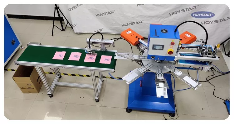 Jako profesjonalny producent i dostawca automatyczna maszyna do sitodruku w 1 kolorze HOYSTAR. jest specjalnie zaprojektowany do w pełni automatycznego drukowania na serwetkach. Usprawniony proces drukowania przebiega w następujący sposób: ręczne ładowanie serwetek na maszynę – automatyczny druk pierwszego koloru – automatyczne suszenie – automatyczne rozładowywanie – i automatyczny odbiór produktów.