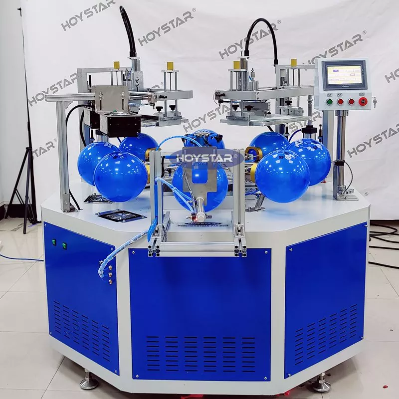 Jako profesjonalny producent i dostawca, automatyczna maszyna do sitodruku 2-kolorowych balonów HOYSTAR jest przeznaczona do drukowania na balonach lateksowych. Wyposażony w obrotowy stół roboczy, automatyczny nadmuch, automatyczne obracanie, automatyczne suszenie, funkcje automatycznego rozładunku. Sterowanie za pomocą ekranu dotykowego PLC, przyjazny dla użytkownika interfejs zapewniający bezpieczną i intuicyjną obsługę. Maszyna łączy w sobie szybkość, precyzję i łatwość obsługi.