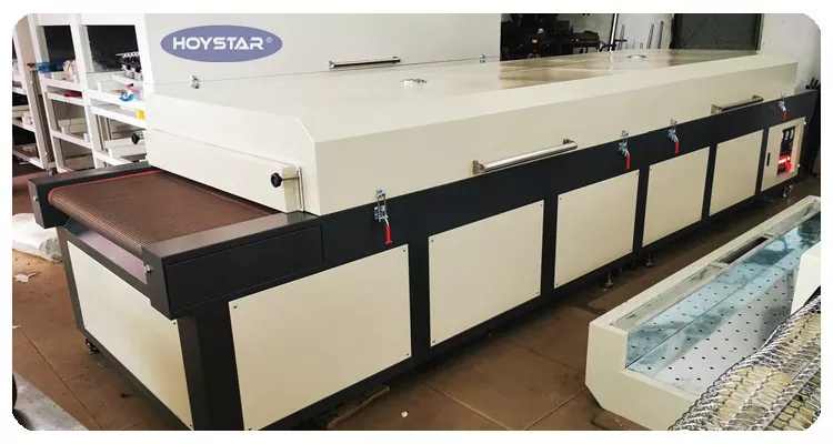 Jako profesjonalny producent w Chinach chcielibyśmy zapewnić Państwu wysokowydajną dużą suszarkę na podczerwień HOYSTAR z przenośnikiem taśmowym. Nadaje się do suszenia różnych produktów — takich jak tekstylia, flagi, banery, blachy aluminiowe, szkło, papier i tworzywa sztuczne — po procesach takich jak sitodruk, malowanie, nakładanie kleju termoutwardzalnego, drukowanie atramentowe i nie tylko.