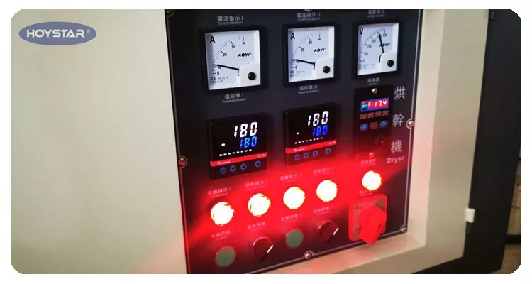 Maszyna wyposażona jest w panel operacyjny. Temperaturę suszenia można dowolnie regulować, aby spełnić wymagania suszenia.