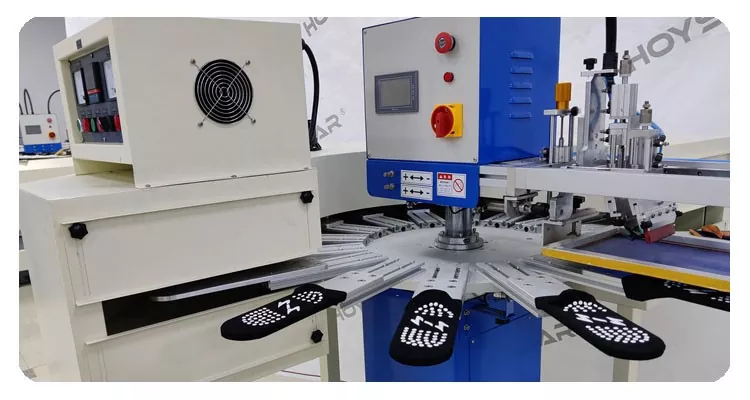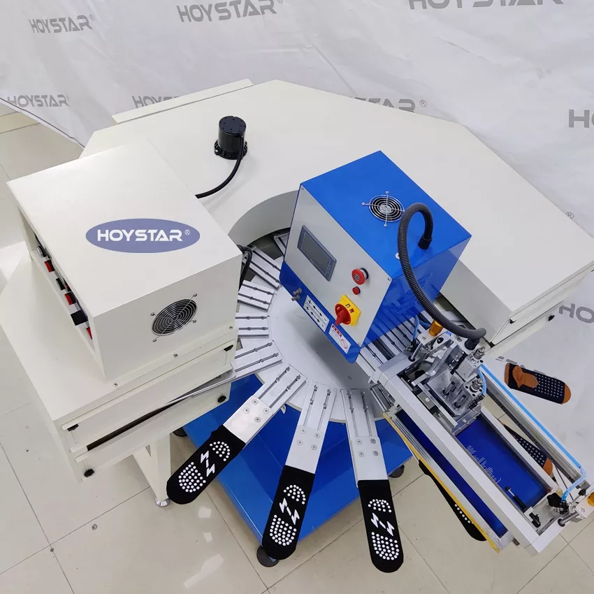 Jako profesjonalny producent w Chinach, chcielibyśmy zapewnić Państwu szybką maszynę do sitodruku w dużych rozmiarach skarpet HOYSTAR. Jest wyposażony w 16-stanowiskową maszynę odpowiednią do produkcji wielkoseryjnej. Posiada zaawansowany sterownik PLC i ekran dotykowy, który pozwala drukować podeszwy skarpet i obcasy. Zintegrowany tunel suszący IR zapewnia skuteczne suszenie krzemu i atramentu