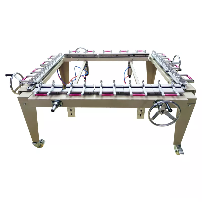 Maszyna do napinania ram sitowych służy do równomiernego i szczelnego naciągnięcia sita na ramę aluminiową lub drewnianą, zapewniając równomierne napięcie sita – jest to kluczowy czynnik zapewniający równomierny druk atramentowy podczas procesu drukowania.