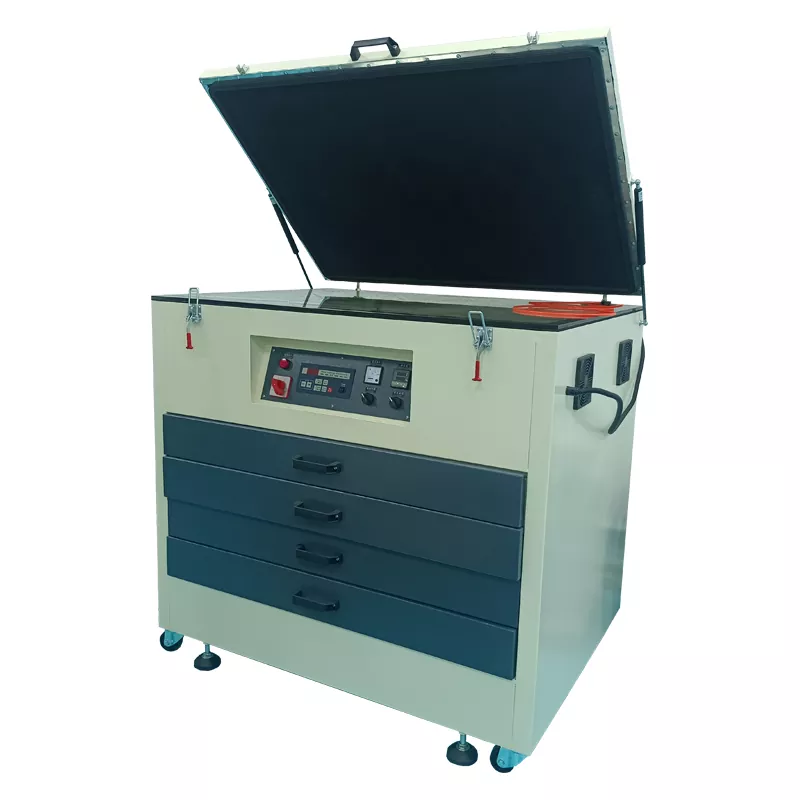 Maszyna do naświetlania promieniami UV jest kluczowym urządzeniem do przenoszenia wzorów na ramę ekranu. Wykorzystują promieniowanie ultrafioletowe do utwardzania światłoczułej emulsji na ramce ekranu i tworzenia precyzyjnych wzorów szablonów na podstawie rysunków projektowych.