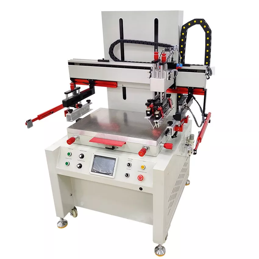 Nasza seria maszyn do sitodruku z płaskim łożem obejmuje różne modele drukarek płaskich, od małych jednostek po maszyny wielkoformatowe, odpowiednie do różnych wymagań produkcyjnych. Nasze płaskie maszyny do sitodruku mają regulowany docisk rakla, dostosowywaną prędkość drukowania i próżniowy stół roboczy do zabezpieczania produktu.